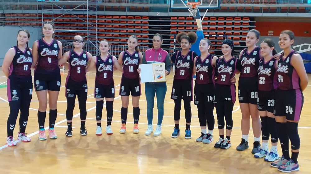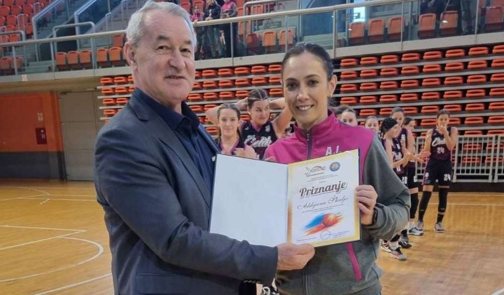 Pred početak nedjeljne utakmice Regionalne WABA U15 lige, KŽK Čelik – ŽKK Budućnost, mala svečanost na terenu za dodjelu priznanja Aldijani Škaljo, trenerici pionirki KŽK Čelik BH Telecom.
