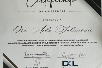 „U svojstvu KOL tima kompanije Radiant zajedno sa kolegom dr. Edinom Kulovićem održali smo osam predavanja i 16 live demo injection prezentacija kojima je prisustvovalo više od 350 ljekara stomatologa, plastičnih hirurga i dermatologa. Edukovali smo trenere za edukaciju filerima ispred DKL Academy“, kaže dr. Aida Salčinović.