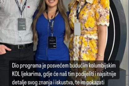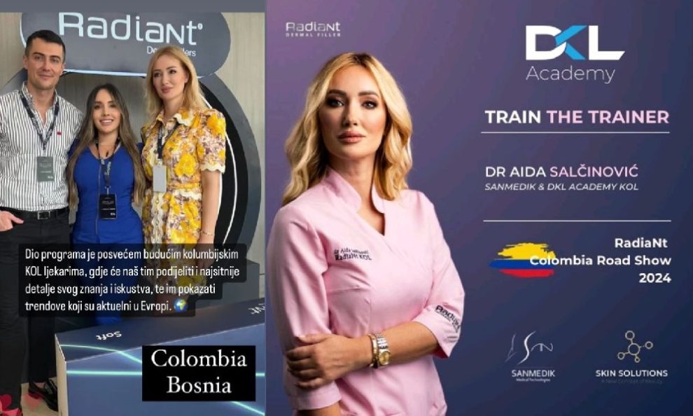 Ministrica zdravstva Zeničko – dobojskog kantona, dr. Aida Salčinović (POKRET) boravila je u Kolumbiji, gdje je u svojstvu edukatora, u gradovima Bogota, Cali i Medelin učestvovala na tzv. hands-on radionicama. Kao jedan od najcjenjenijih doktora na polju estetske medicine u našoj zemlji i regionu, dr. Salčinović stručnjacima iz Kolumbije i drugih država Južne Amerike imala je priliku prezentirati kliničke studije i SLO-HA tehnologiju kreiranja RadiaNt filera.
