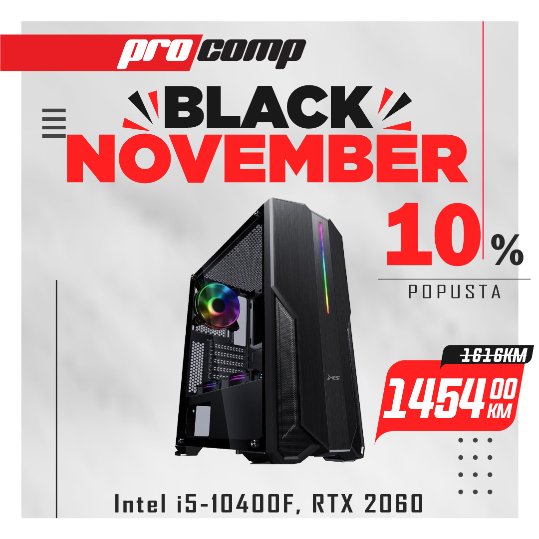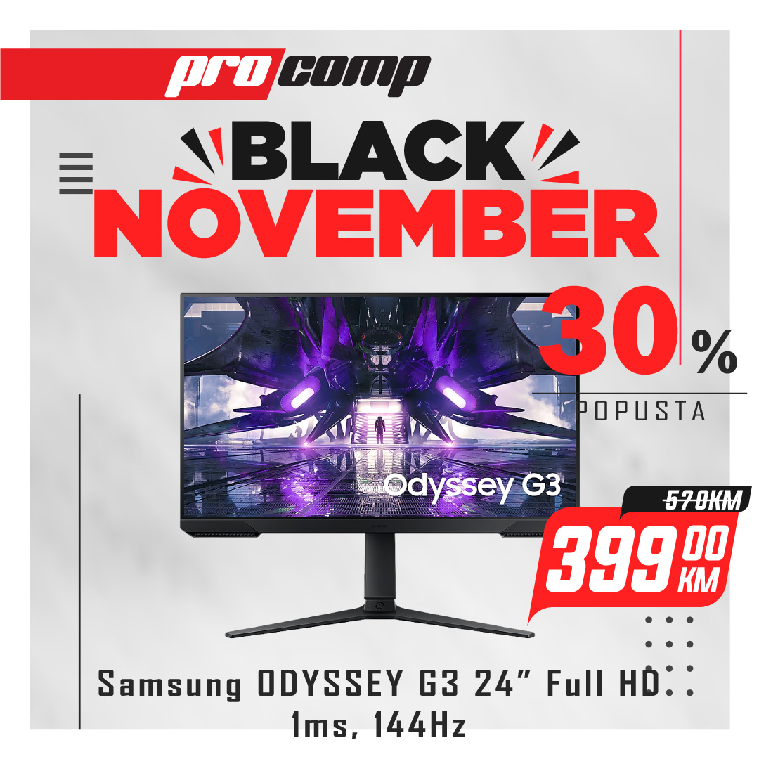 Black november sniženje do 70% u ProComp-u. Mjesec dana nevjerovatnih popusta, snižene cijene gaming računara, laptopa, televizora, monitora, gaming periferije, pametnih satova i još mnogo toga.