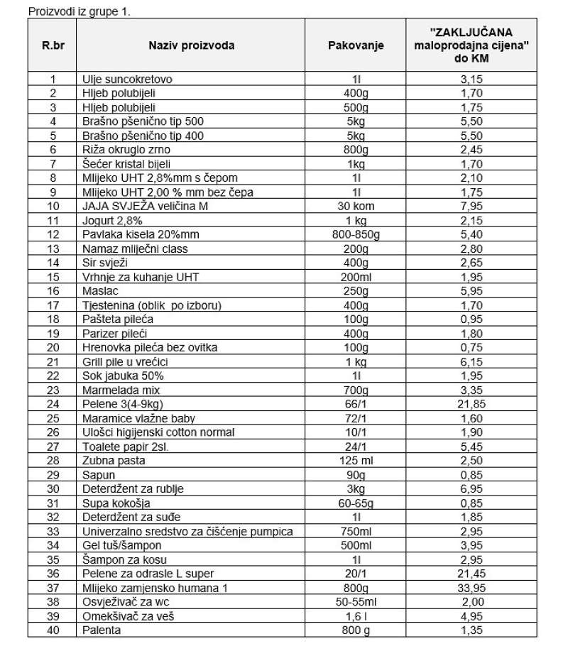 Vlada Federacije Bosne i Hercegovine, na inicijativu Federalnog ministarstva trgovine, donijela je odluku o produženju važenja mjera neposredne kontrole cijena, kojom se zadržava ograničenje maloprodajnih cijena za ukupno 65 osnovnih proizvoda. Produžene mjere stupaju na snagu 1. juna i ostaju važeće do 1. septembra 2025. godine.