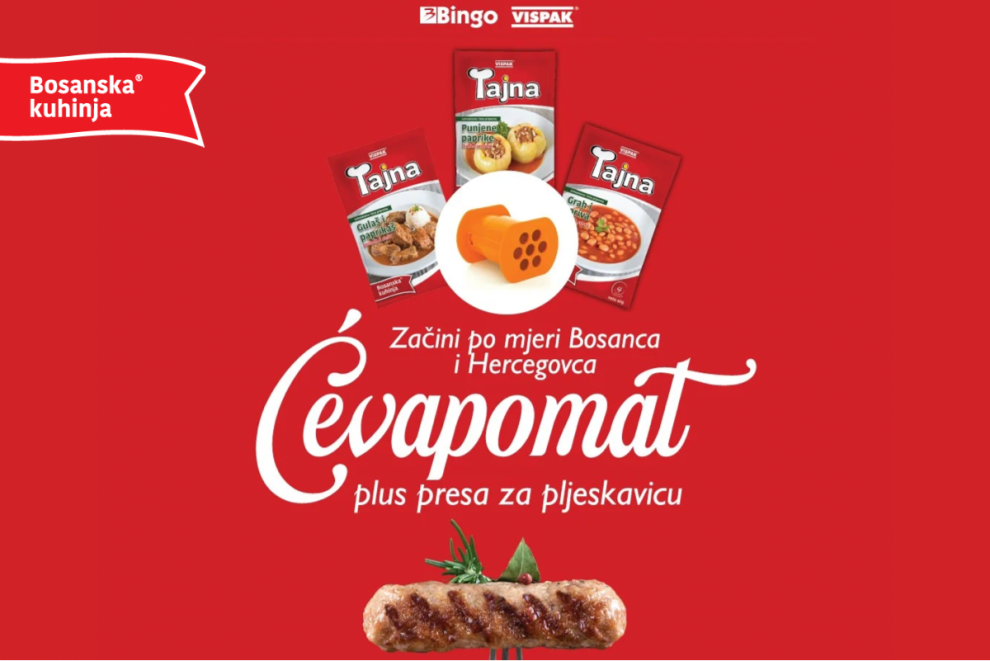 U sklopu niza aktivnosti koje kompanija Vispak strateški realizuje sa Bingom tokom prethodnih godina, trenutno je u toku i program lojalnosti koji kupcima donosi niz zanimljivih i korisnih iznenađenja. Pred proljetnu sezonu odlazaka u prirodu i uživanja u grill delicijama, Vispak i Bingo svojim vjernim potrošačima daruju originalan poklon Tajnomat – ćevapomat za jednostavnu i savršenu pripremu ćevapa, a sve što je potrebno jeste da na policama Bingo trgovina birate Vispakov dodatak jelima Tajna.