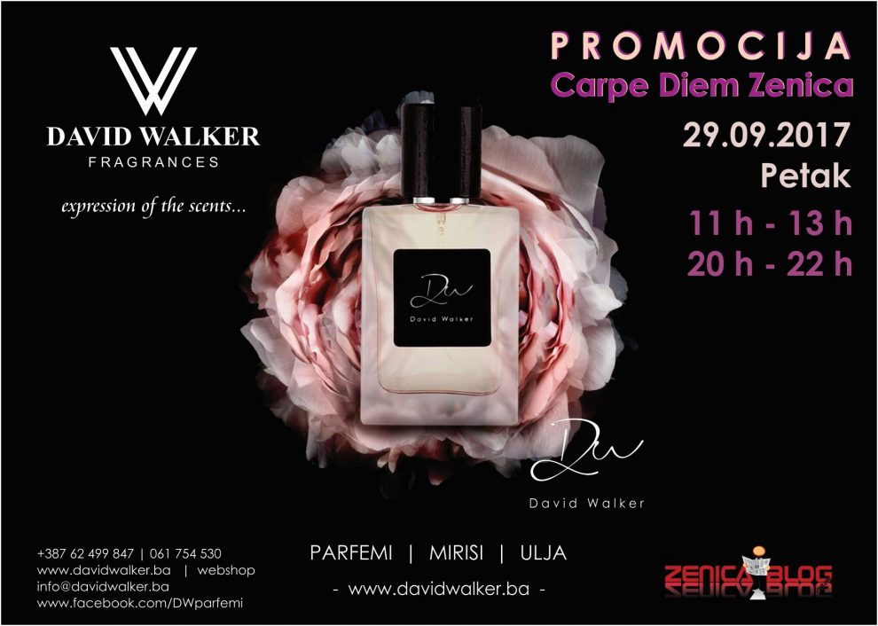 PROMOCIJA “DAVID WALKER PARFEMA” u Carpe Diem-u u Zenici – Pozivamo sve zainteresovane da nam se pridruže na promociji David Walker parfema i upoznaju naš asortiman proizvoda u prelijepom ambijentu Carpe Diem-a.