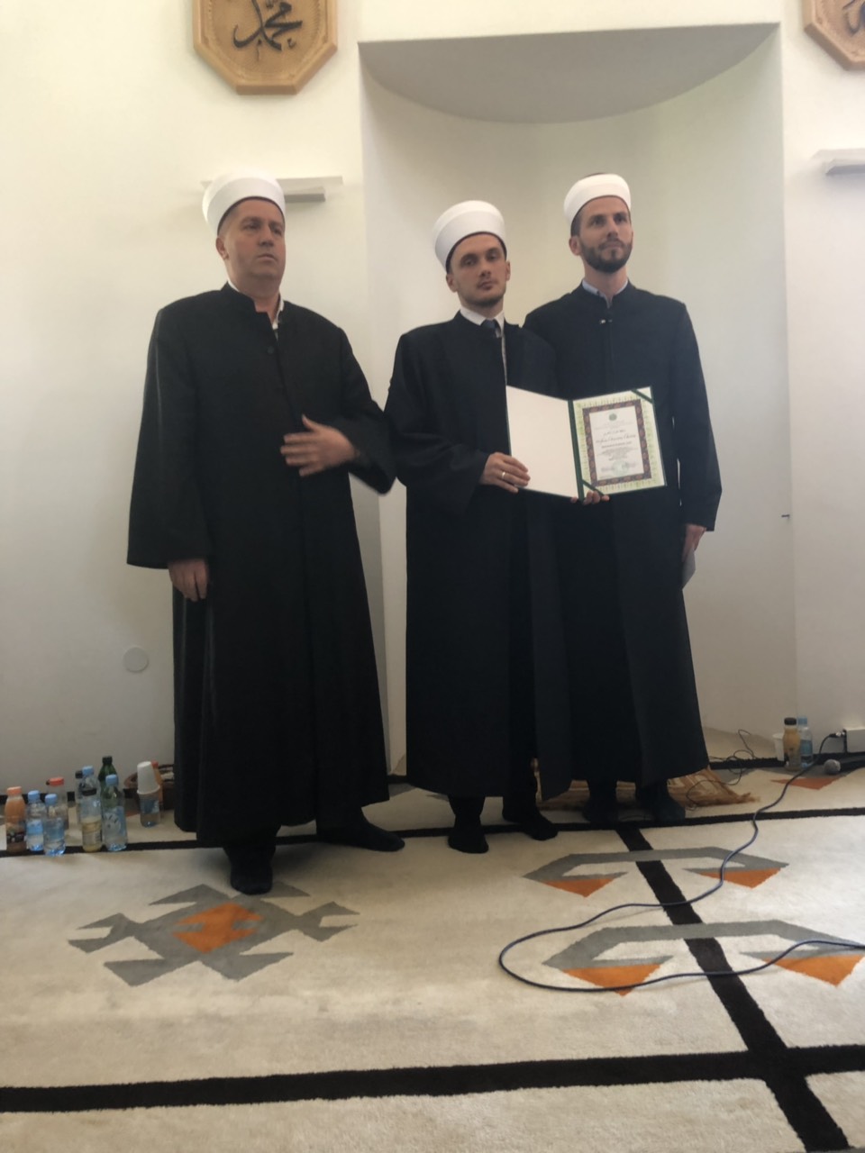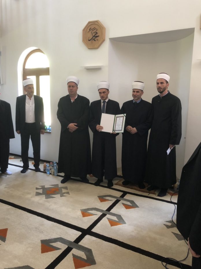 Nakon obraćanja hafiz Abdulaziz je pozvao mladog hafiza i uručio mu diplomu. Svečanost je okončana čestitanjem i uručivanjem poklona mladom hafizu.