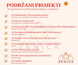 U konačnici, bilo je važno da podržane ideje budu iz svih oblasti: obrazovanje, kultura i umjetnost, očuvanje životne sredine, javni prostori i sport.
