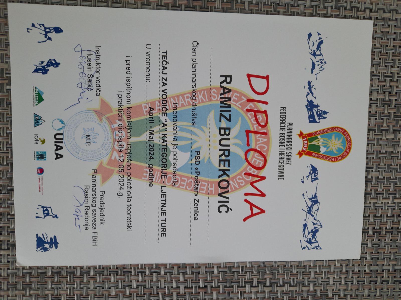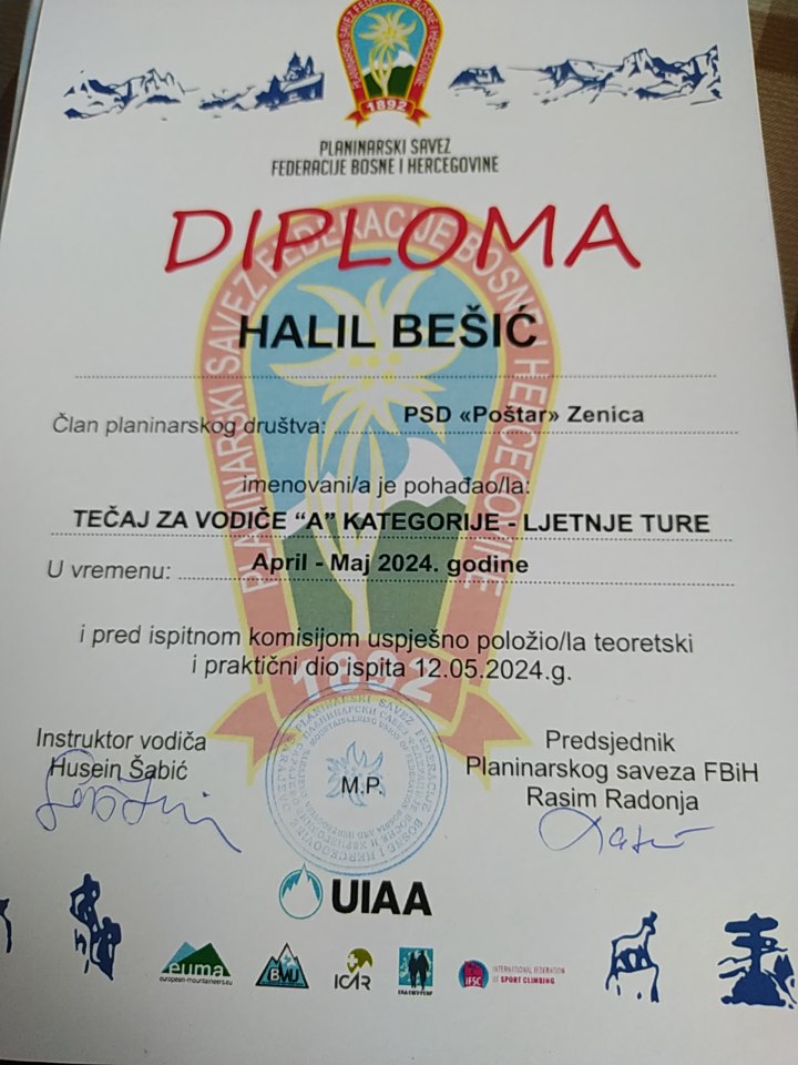Tri člana planinarsko-sportskog društva “Poštar”-Zenica (planinarska grupa BiH Exploreri) Ramiz Bureković, Abdulah Jašarević i Halil Bešić su uspješno završili tečaj za planinarske vodiče i dobili su certifikat-diplomu za planinarske vodiče.