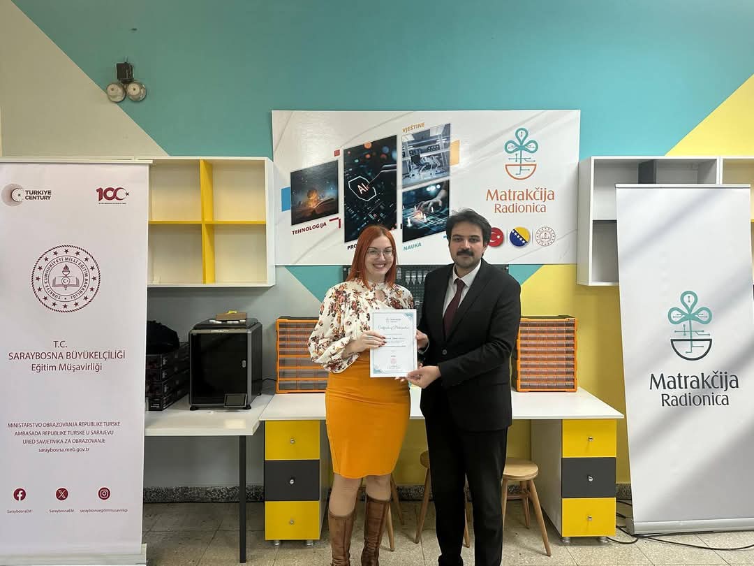 U petak, 21. februara, u prostorijama SMŠ „Mladost“ u Zenici, održana je edukacija na temu „Pametni sistemi oblikuju budućnost“ u sklopu prvih aktivnosti u kategoriji tehnologije pri Radionicama promišljanja, nauke i tehnologije „Matrakčija“. Ovom treningu za edukatore/edukatorice su prisustvovale i naše asistentice Irma Hasanica-Pašalić (SP TJK) i Larisa Mahmić-Kobilica, MA (SP BHSJK).