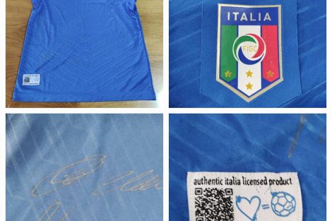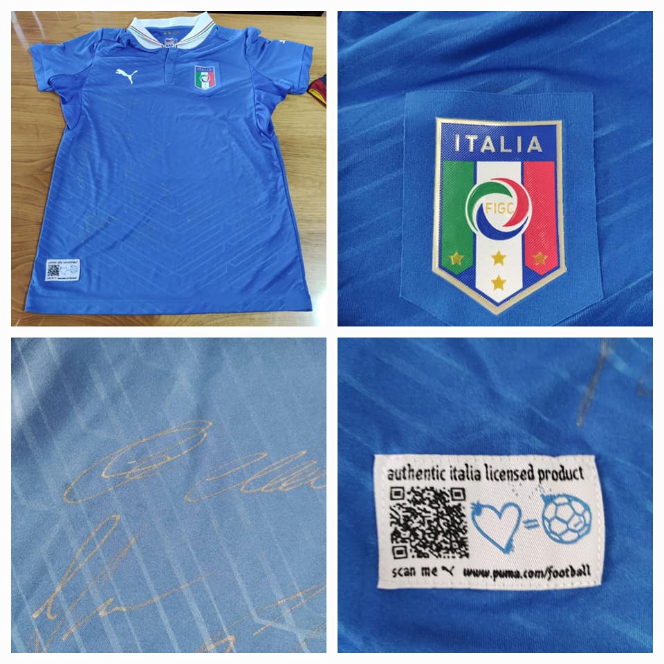 Drugi je originalni dres reprezantacije Italije sa Svjetskog prvenstva u fudbalu 2014. godine potpisan od strane 15 igrača koji su tada nastupali (Pirla, Bufona,Balotelija…)