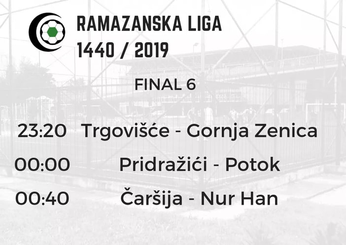 Ramazanska Liga: Večeras utakmice Final 6 – Ramazanska liga je došla u svoju završnu fazu a pretposljednju takmičarsku noć će biti odigrane utakmice Final 6 gdje se takmiči 6 ekipa koje su izborile plasman u prestižnu fazu takmičenja lige.