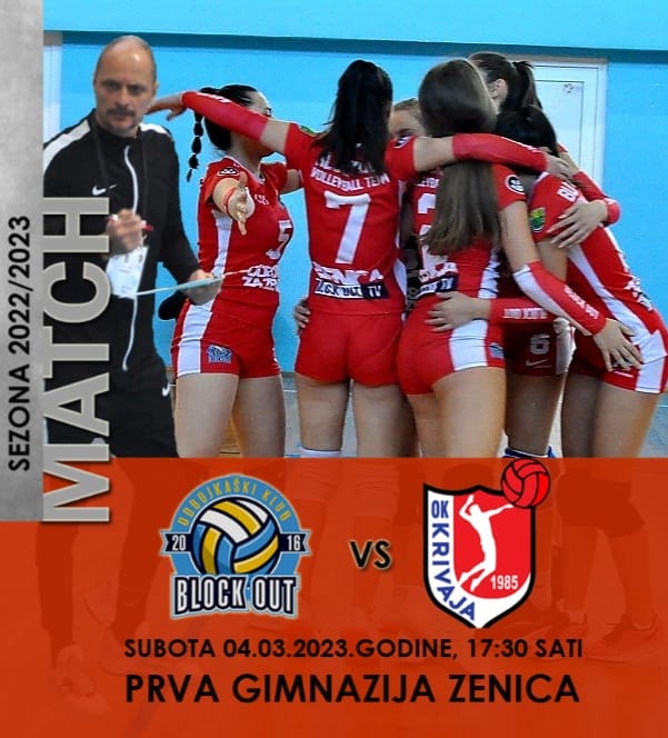 17,30 sati, Zenica: OK „Block Out“ – OK „Krivaja“ Zavidovići (Prva žen. Feder. liga, gr. Sjever, 14.kolo, Prva gimnazija Zenica);