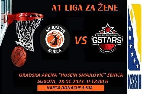 18 sati, Zenica: KK Jumper – KK G-Stars Gračanica (A1 Liga liga za žene-8.kolo, gradska Arena „Husejin Smajlović“ u Zenici);
