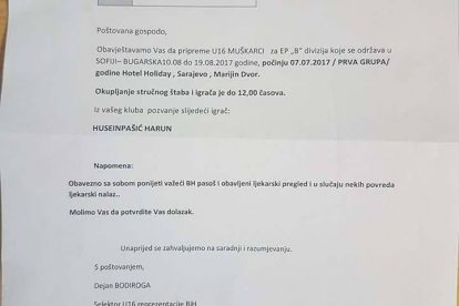 Pripreme su zakazana za 7. juli u hotelu Holiday u Sarajevu, a selektor Bodiroga je pozvao 15 igrača među kojima se našao i mlada nada zeničke košarke Harun Huseinspahić.