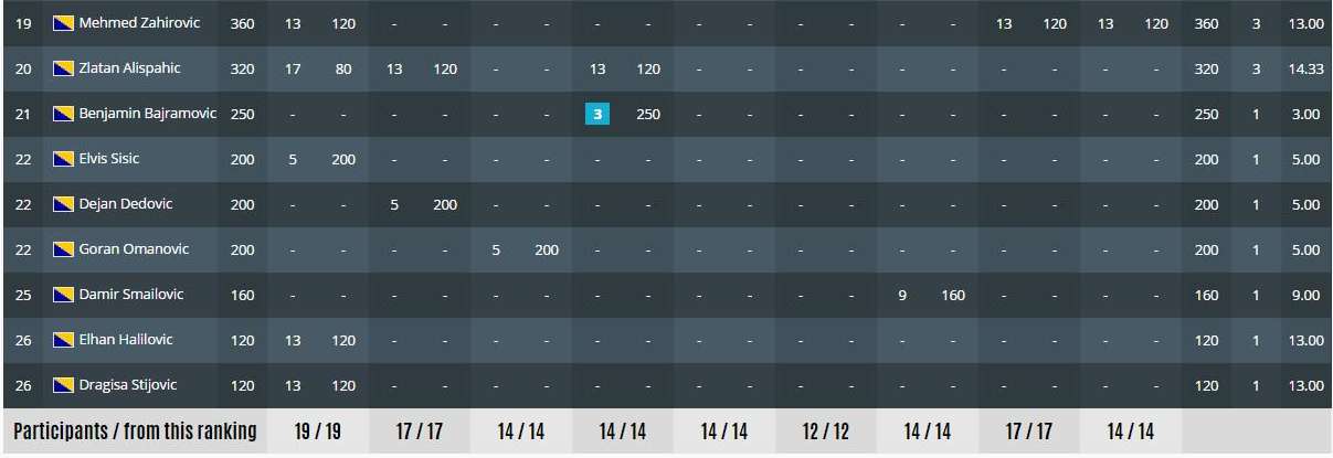 Rezulati mastersa za prvaka Zeničke lige u disciplini DESETKA i ukupni poredak Zeničke lige za sezonu 2016/2017.