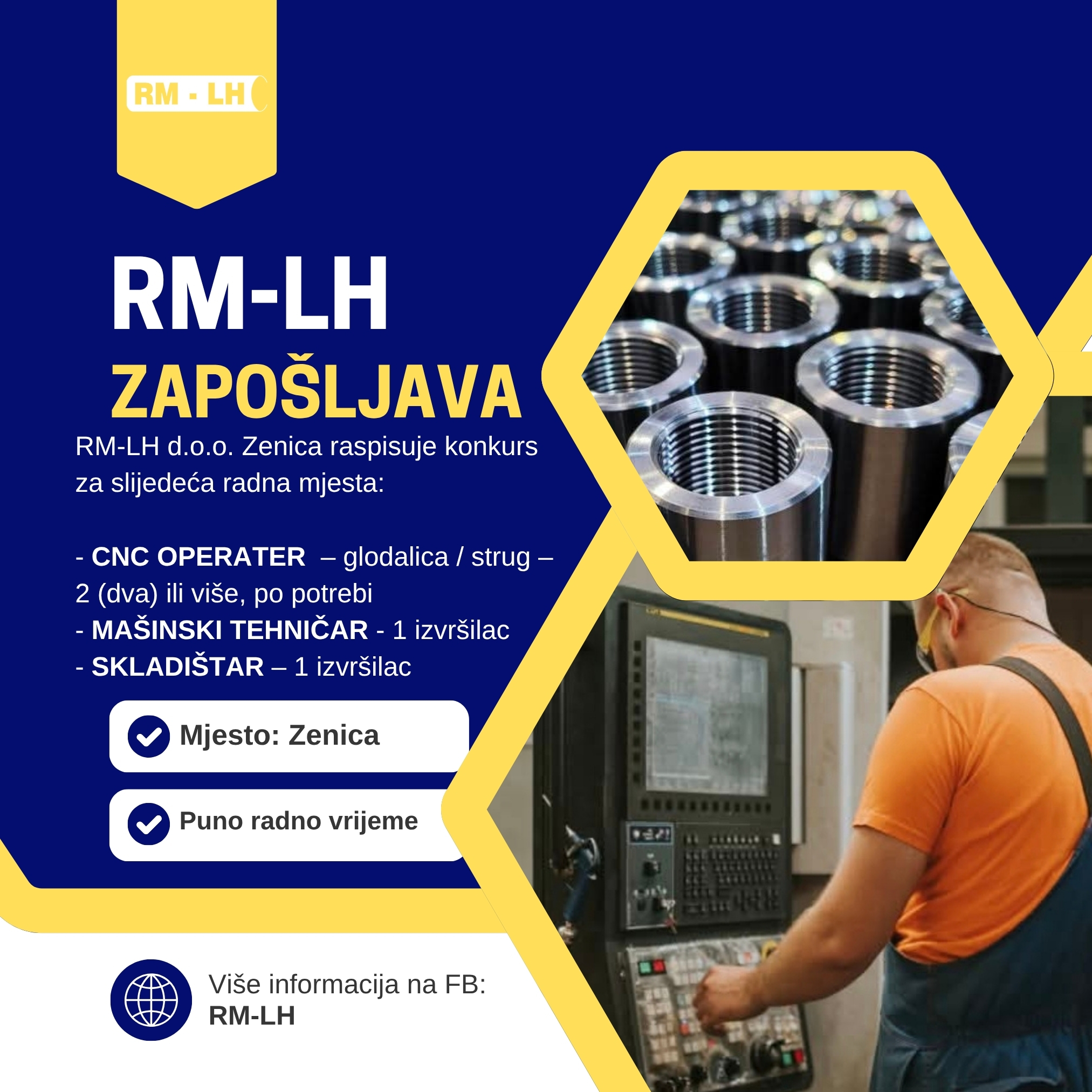 RM-LH d.o.o. Zenica raspisuje konkurs za slijedeća radna mjesta: