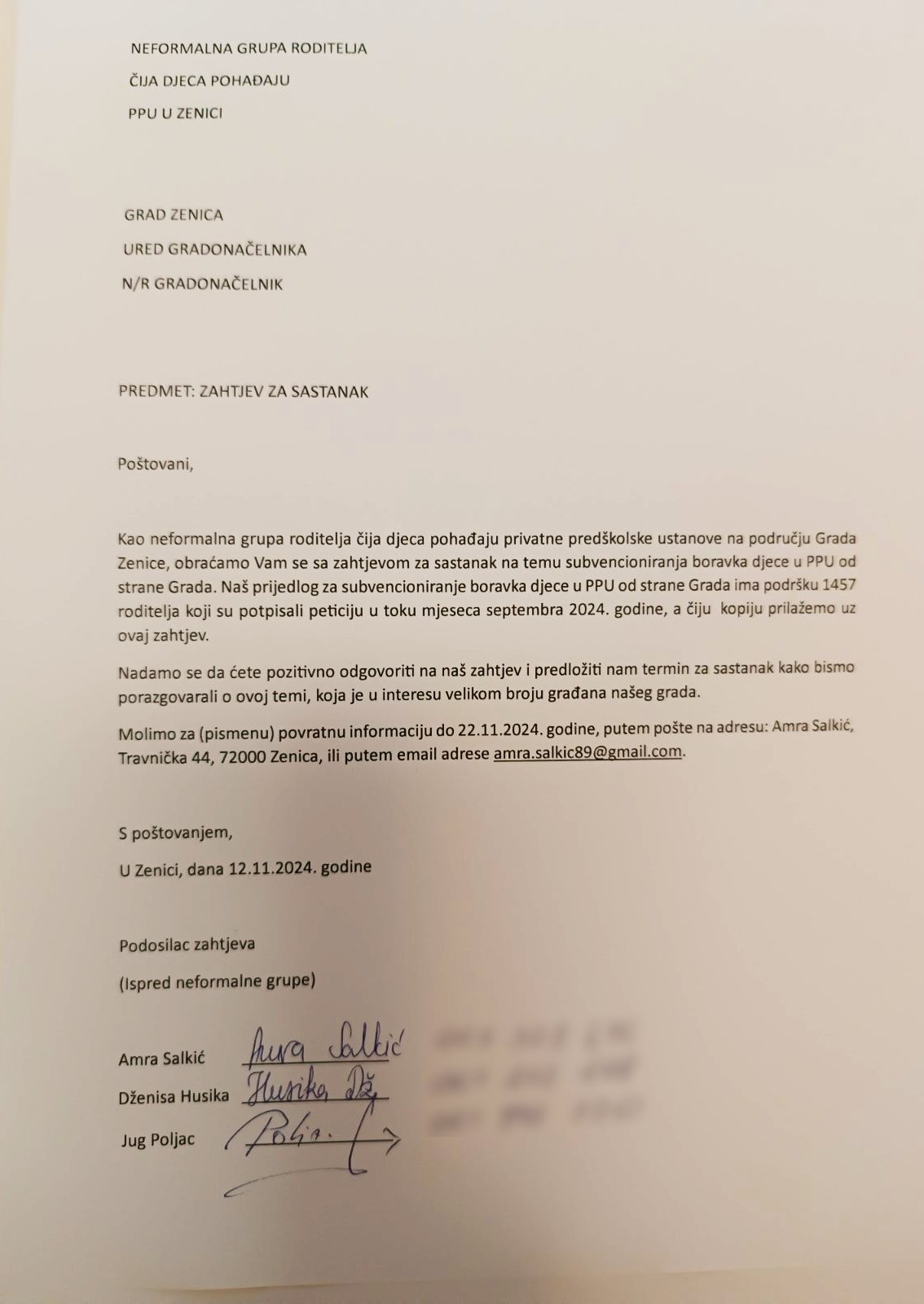 Saopćenje za javnost- Mi, neformalna grupa roditelja čija djeca pohađaju privatne predškolske ustanove u Zenici, obraćamo se javnosti i Gradskom vijeću Zenice s molbom za uvrštavanje subvencioniranja boravka djece u privatnim vrtićima u Budžet Grada Zenice za 2025. godinu.