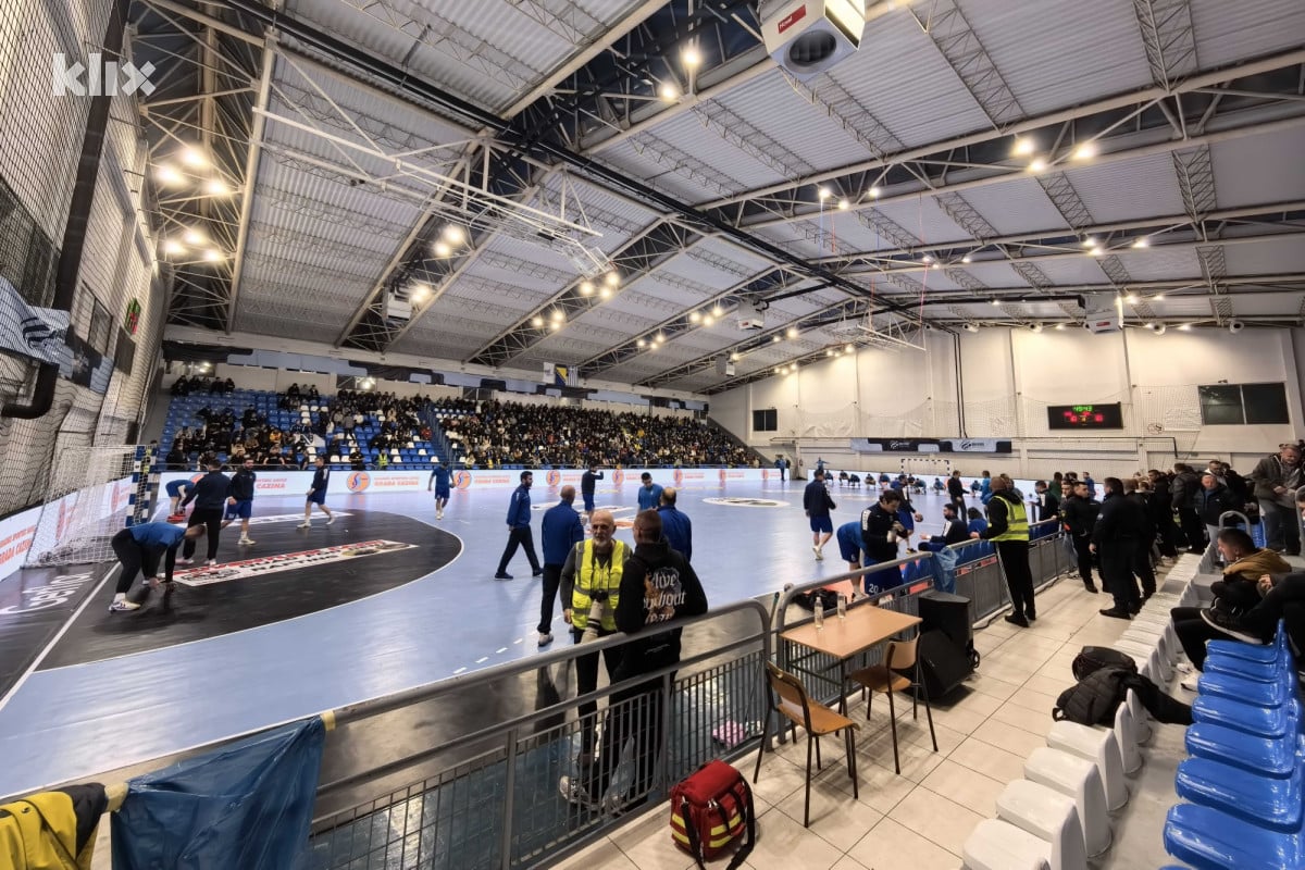 Nakon početnog vodstva Grčke, BiH je bila znatno bolji rival. Prednost je konstnantno rasla do maksimalnih četiri gola razlike (7:3). Do odlaska na odmor je u još nekoliko navrata bilo četiri razlike za BiH, ali su se Grci vratili u završnici prvog poluvremena pa se na odmor otišlo s rezultatom 13:11 za BiH.