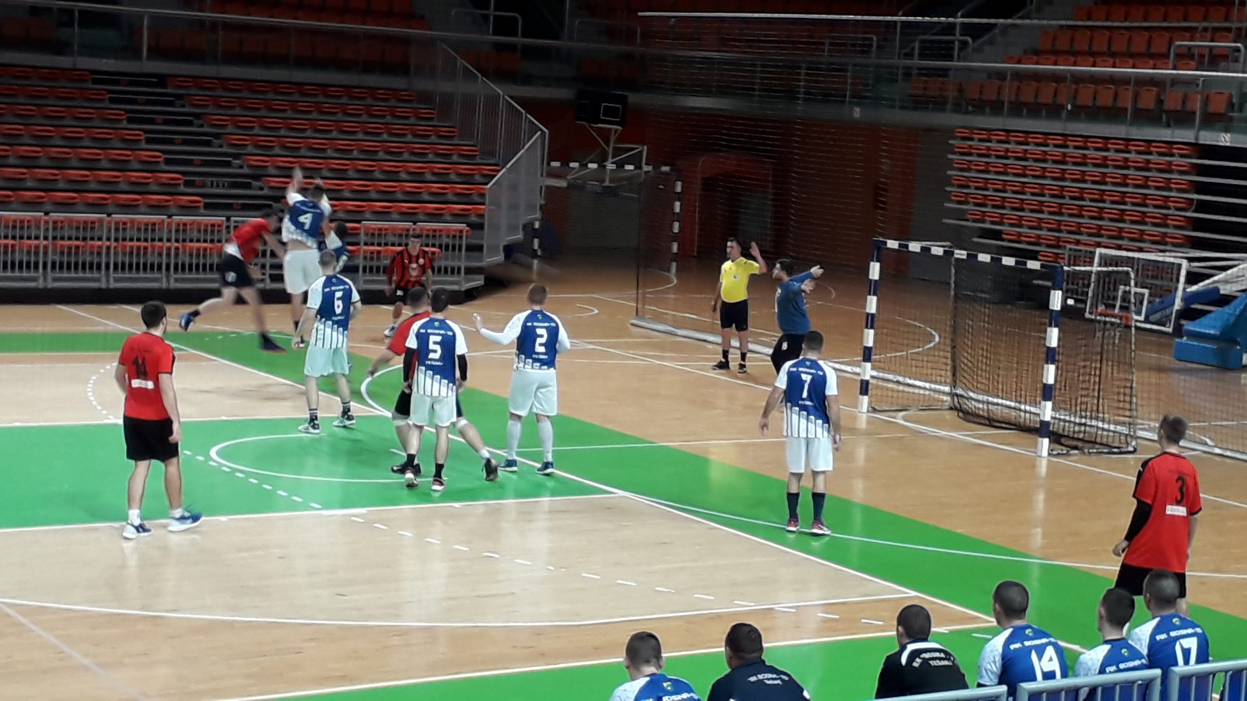 Favorizovana ekipa Čelik Juniora zabilježila je rutinsku pobjedu protiv „fenjeraša“ na tabeli, ekipe Bosna TS iz Tešnja. U prvom poluvremenu vidjeli smo dosta izjednačenu utakmicu, ekipe su se smjenjivale u vođstvu, a gosti iz Tešnja čak četiri puta su imali i minimalnu prednost, 7:8 u 15′, zatim 8:9, 9:10 i 10:11.