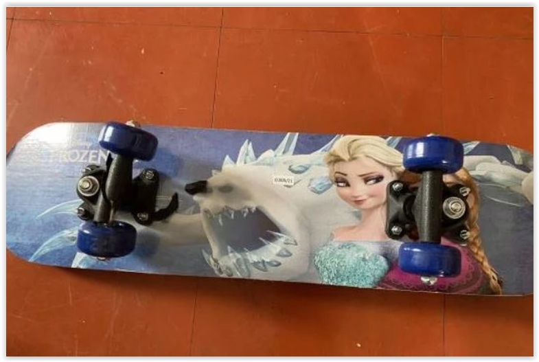 Skateboard “Frozen” predstavlja rizik od povreda jer je došlo do loma daske prilikom ispitivanja, gornja površina daske nije izrađena kao protivklizna površina, a nisu čitko ni trajno istaknute informacije o standardu EN 13613, imenu, logu ili slične oznake za identifikovanje proizvođača ili dobavljača, kao ni oznaka za identifikovanje proizvoda, te maksimalno ograničenje mase korisnika. Ovaj proizvod ne ispunjava ni bezbjednosne zahtjeve propisane u standardu BAS EN 13613:2012.