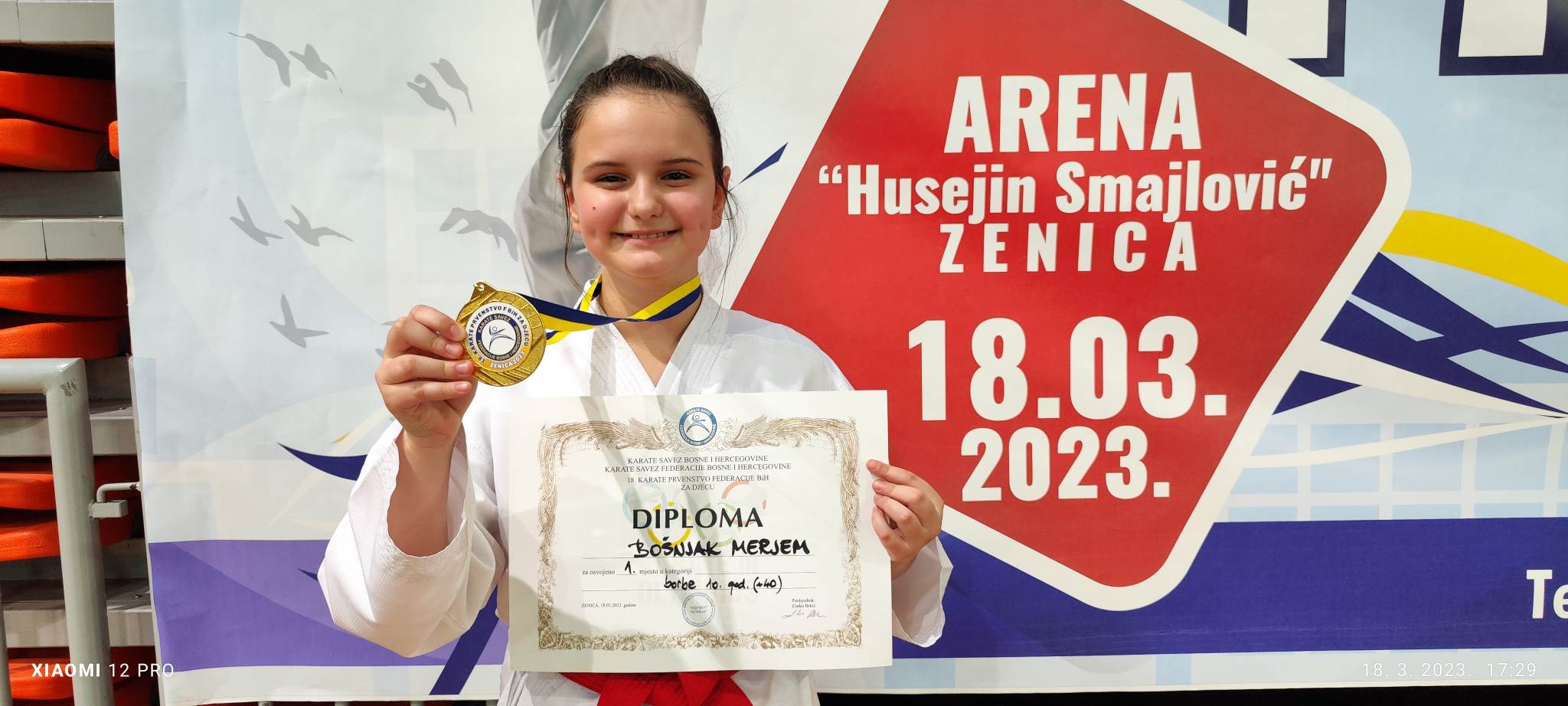 – Merjem Bošnjak je uspješno osvojila prvo mjesto i zlatnu medalju u kategoriji borbe djevojčice 10 godina 40+ kg