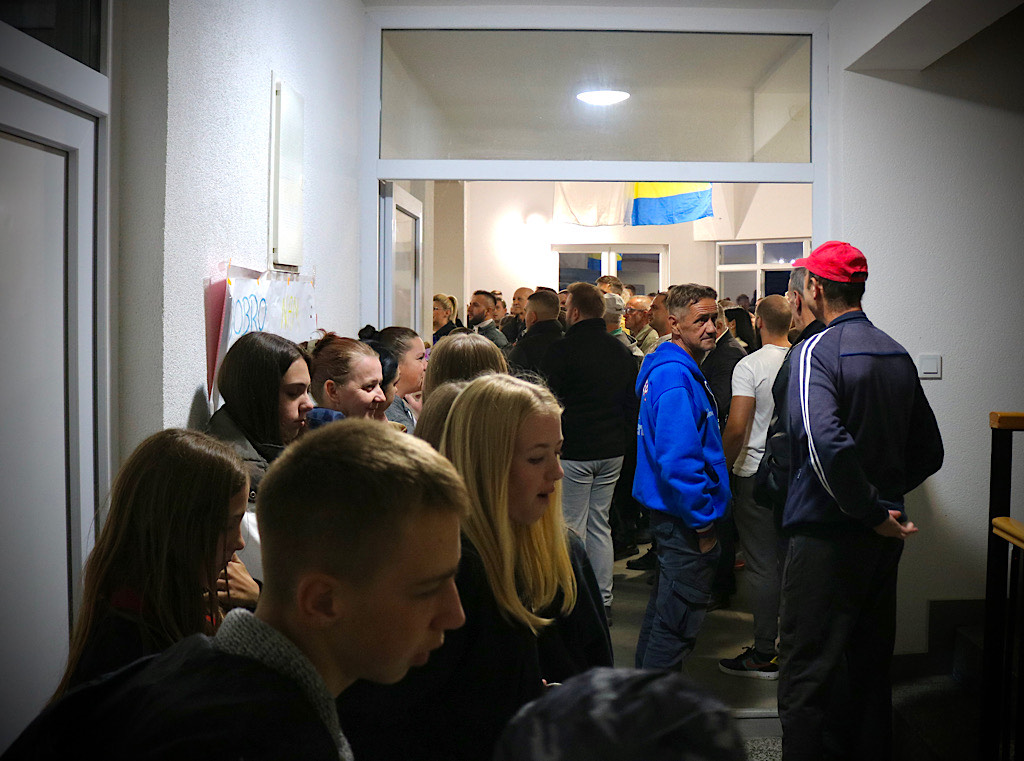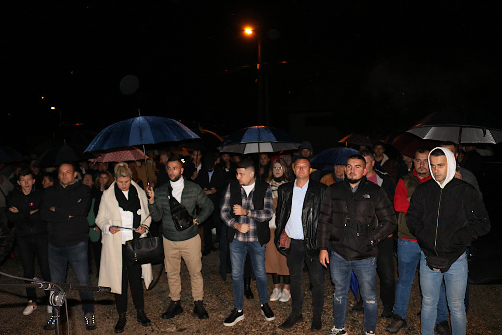 Društveni dom u Gorici bio je premali da primi sve simpatizere i mještane, a uprkos kiši brojni mještani Perinog Hana došli su na skup ispred društvenog doma.