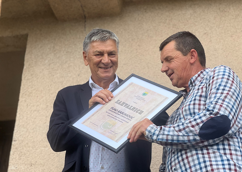 Na svečanosti u Gradini u znak zahvalnosti za doprinos izgradnji i asfaltiranju puta, Savjet MZ Osredak-Gradina uručio je zahvalnicu gradonačelniku Kasumoviću.