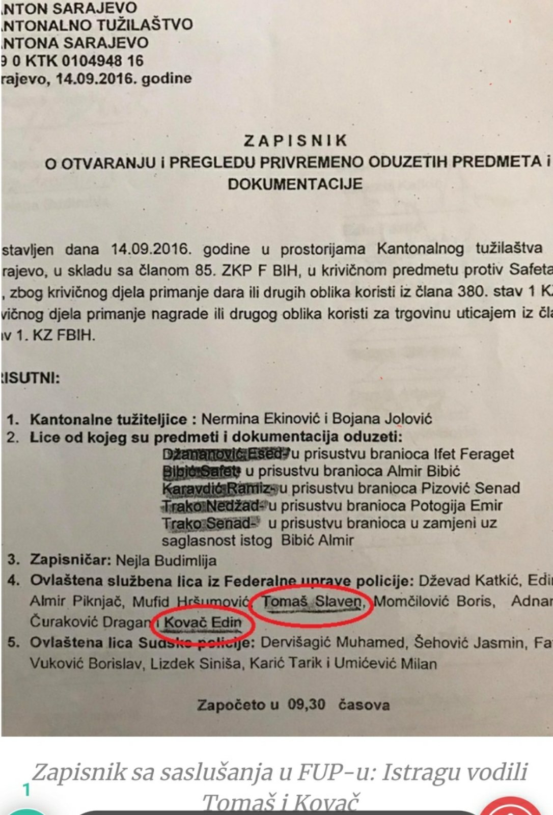Tužilaštvo BiH je početkom maja ove godine formiralo predmet koji se vodi pod tužiteljskim brojem T20 0 KTK 0022161 22 ,nakon što je 15.aprila.2022.g. Agenciji za istrage i zaštitu-SIPA-i, Federalnoj upravi policije i Tužilaštvu BiH podnesen Izvještaj o počinjenom krivičnom djelu protiv Kovač Edina, bivšeg inspektora FUP-a Detašman Zenica (1.Dokaz u prilogu , Akt Tužilaštva BiH br.A-T-225/22 od 09.06.2022.g.)