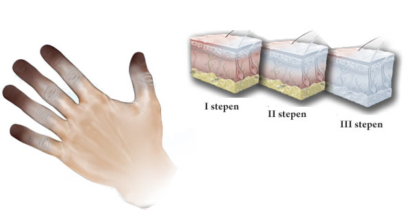 Ako je usljed izlaganja hladnoći, koža prstiju šake ili stopala blijeda uz pojavu trnjenja i gubitka osjeta, a pri utopljenju crvena, potrebno je potražiti pomoć ljekara.