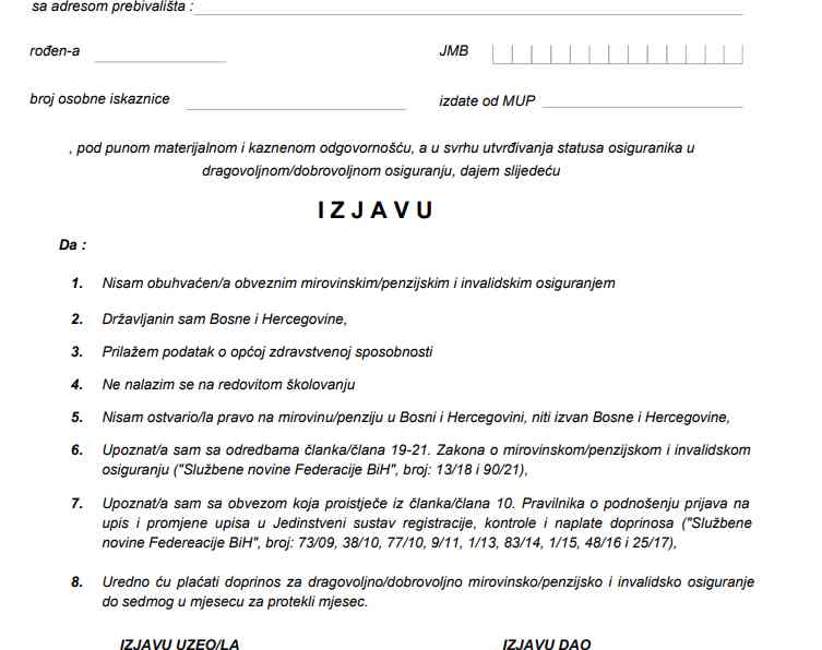 – Iznos dobrovoljnog osiguranja u 2022. godini je 259,93 KM. Ovo osiguranje se regulira u Zavodu PIO sklapanjem ugovora i uplaćuje se mjesečno. Dobrovoljno osiguranje može uplaćivati svaka osoba starija od 15 i mlađa od 65 godina života, a koja ima prebivalište u Federaciji BiH i koja se, naravno, ne nalazi u obaveznom osiguranju. Dakle, koja nije u radnom odnosu – rekao nam je Tomislav Kvesić, portparol Federalnog zavoda za penzijsko i invalidsko osiguranje.
