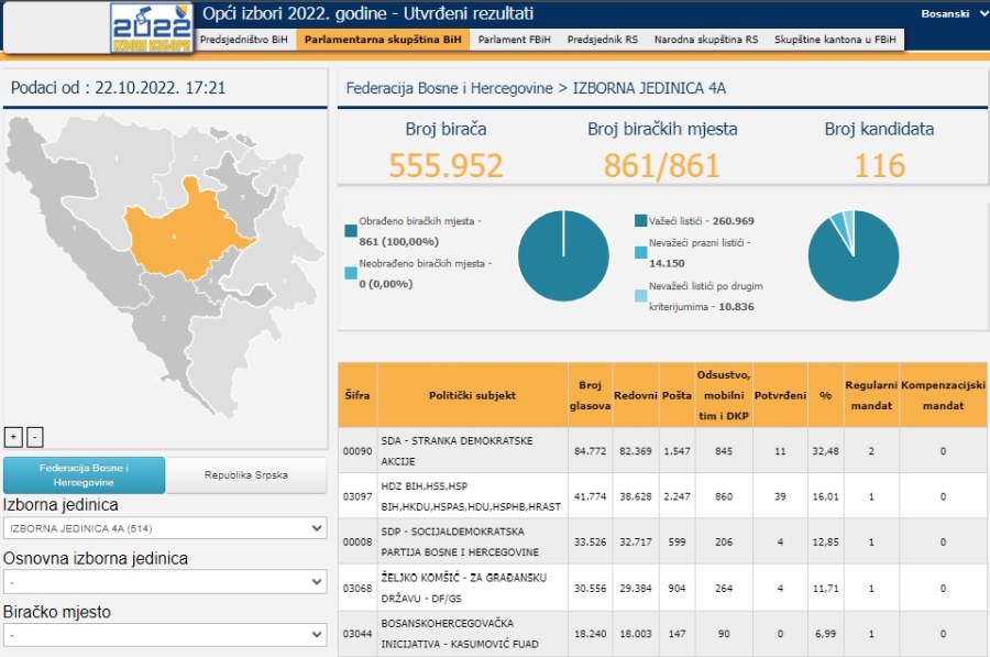 Više od 555 hiljada birača u Zeničko-dobojskom i Srednjebosanskom kantonu čini izbornu jedinicu 4A – 514 koja delegira šest osoba za Parlamentarnu skupštinu BIH iz ovog dijela Federacije.