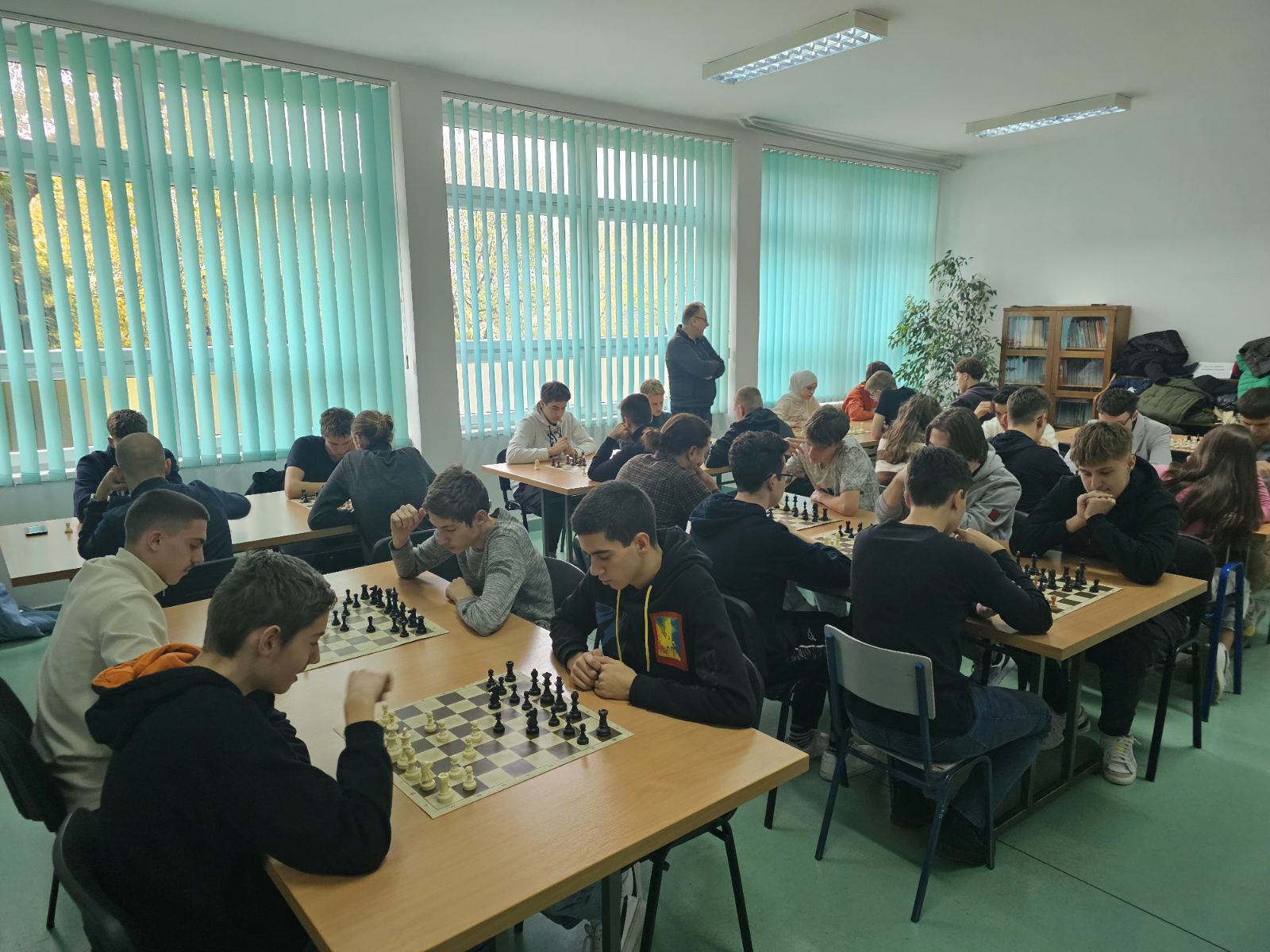 Na Pojedinačnom prvenstvu Prve gimnazije učestvovao je 31 učenik, a nakon pet uzbudljivih kola odigranih po švicarskom sistemu s kompjuterskim parovanjem, Nidal Tabak osvojio je prvo mjesto s 4,5 poena. Drugo mjesto pripalo je Ahmedu Kavazoviću, također s 4,5 poena, ali s nešto lošijim dodatnim kriterijem. Na trećem, četvrtom i petom mjestu našli su se učenici sa po 4 osvojena poena, a konačan poredak je sljedeći: