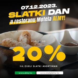 Sutra, 7. decembra 2023. godine, pozivamo Vas da nam se pridružite na neodoljivom putovanju slatkim okusima jer smo pripremili SLATKI DAN za sve Vas, koji će trajati cijeli dan!