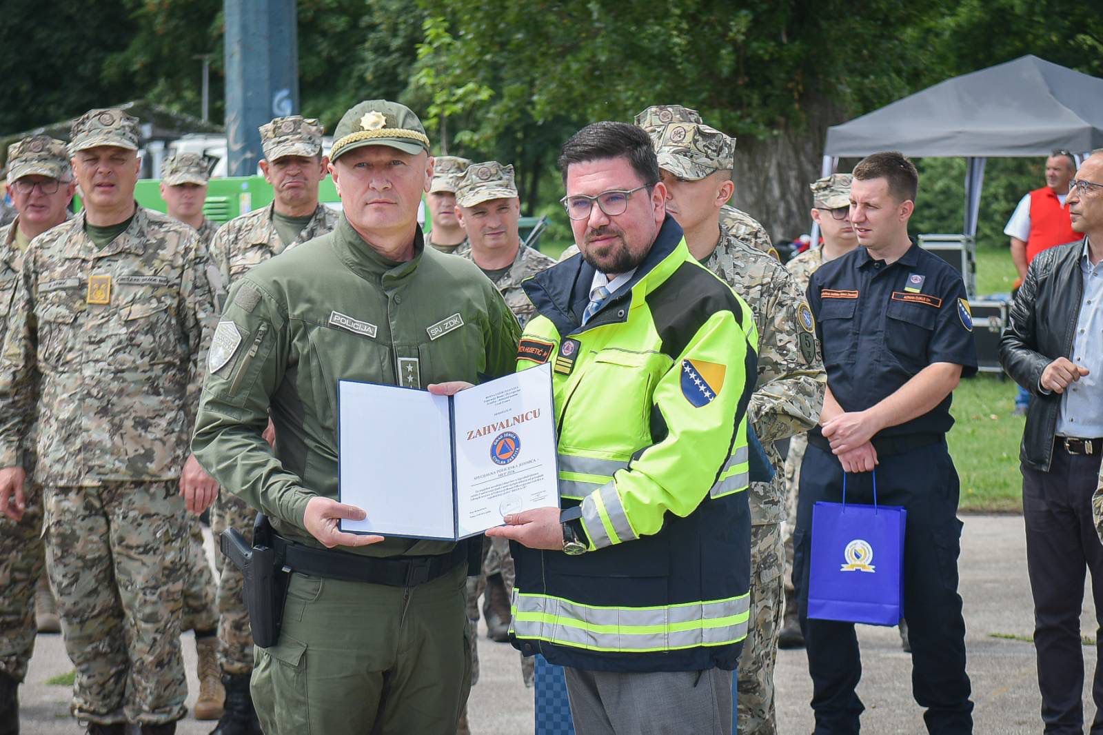 Nakon uspješno izvedene vježbe nastavljeno je druženje, a u svečanom dijelu programa, Specijalnoj policijskoj jedinici Uprave policije Ministarstva unutrašnjih poslova Zeničko-dobojskog kantona je ispred Grada Zenica predsjedavajući Gradskog vijeća uručio zahvalnicu za uspješnu saradnju i doprinos u izgradnji sistema zaštite i spašavanja ljudi i materijalnih dobara od prirodnih i drugih nesreća u Federaciji Bosne i Hercegovine i učešća u zajedničkoj vježbi “BOSNA-24”.