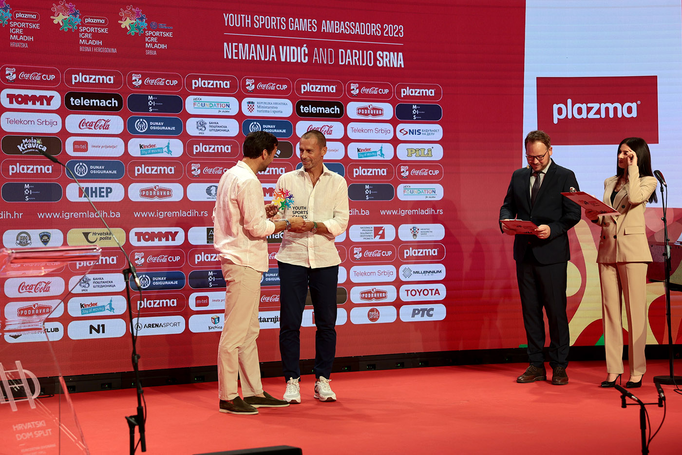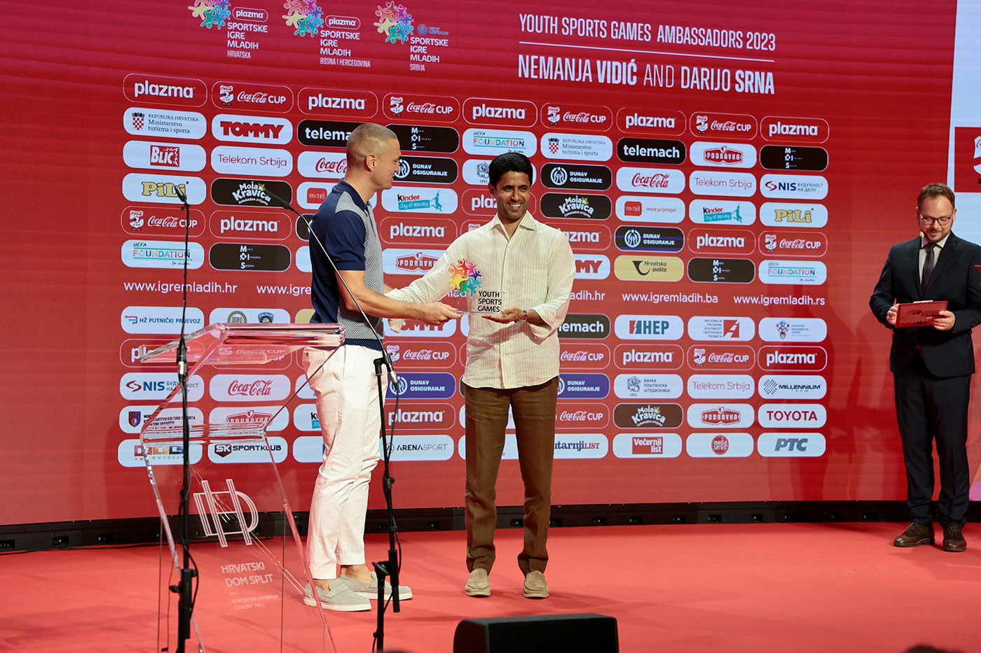 Coca-Cola All-star day u Splitu okupio je brojne nogometne legende, sportske zvijezde, zvanice iz političkog i kulturnog života koji su zajedno s djecom u gradu pod Marjanom učestvovali u promociji sporta i sportskih vrijednosti. Program je započeo svečanom ceremonijom proglašenja ambasadora Plazma Sportskih igara mladih u Hrvatskom domu, a Darijo Srna i Nemanja Vidić pridružili su se velikoj SIM porodici. Nasser Al-Khelaifi i Aleksander Čeferin, ambasadori Igara dodijeli su im plakete, a ceremonija proglašenja okupila je mnogobrojne svjetske sportske zvijezde, dugogodišnje partnere i prijatelje Igara. Zlatko Vujović dodijelio je i posebno priznanje Aleksanderu Čeferinu za najboljeg ambasadora 2023. godine.