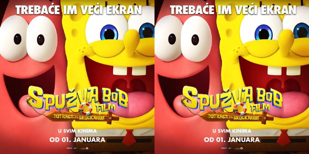 Početak prikazivanja najveće animirane avanture koju smo do sada gledali, „SPUŽVA BOB FILM: POTRAGA ZA SKOCKANIM“ (THE SPONGEBOB MOVIE: SEARCH FOR SQUAREPANTS) obilježio je nesvakidašnje dobar party! Možemo reći, sa velikim zadovoljstvom, da smo na najljepši mogući način ispratili filmsku 2025. godinu. A u isto vrijeme, kako se film već prikazuje u odabranim kinima, dočekali smo i 2026. godinu i možemo da vam obećamo da će biti baš mnogo dobra! Od 1. januara 2026. godine nove avanture Spužva Boba su na redovnom kino repertoaru i to sinhronizovano i titlovano, u 2D i 3D tehnologiji.