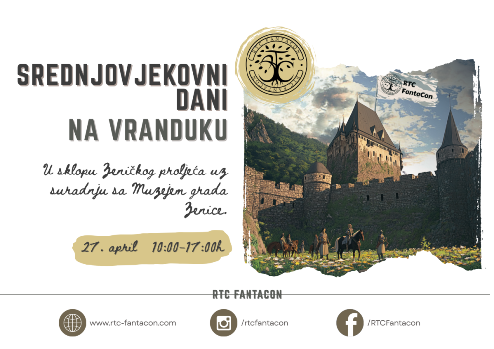 Doživite pravo putovanje kroz vrijeme! U nedjelju, 27. aprila 2025. godine od 10:00 do 17:00 sati, Tvrđava Vranduk postaje pozornica srednjovjekovne magije u sklopu manifestacije Zeničko proljeće. Udruženje RTC FantaCon, uz podršku dugogodišnjeg partnera – Muzeja grada Zenice – priprema spektakl za sve generacije – događaj ‘Srednjovjekovni dani na Vranduku’