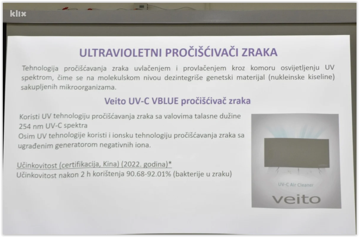 Govornici su danas pomenuli da tradicionalni prečišćivaći zraka za razliku od ultraljubičastih nekada donose više štete nego koristi, ako se filteri ne mijenjaju redovno, s obzirom da se u njemu skupljaju gljivice i drugi paraziti koji prilikom paljenja bivaju iznova raspršeni po prostoriji, dok se UV tehnologija već dugo koristi u zdravstvu što je potvrdio i ministar zdravstva Adnan Jupić.