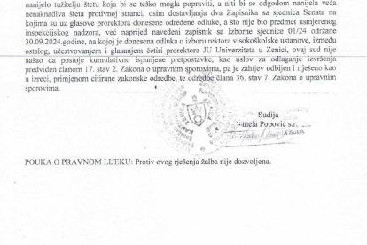 Prema navodima iz Rješenja, na izbornoj sjednici Senata Univerziteta, održanoj 30.09.2024. četiri prorektora su učestvovala i glasala na sjednici na kojoj je izabran rektor ove visokoškolske ustanove. Naime, aktuelni rektor prof. Jusuf Duraković reizabran na novi četverogodišnji mandat koji mu počinje teći u ljeto ove godine.