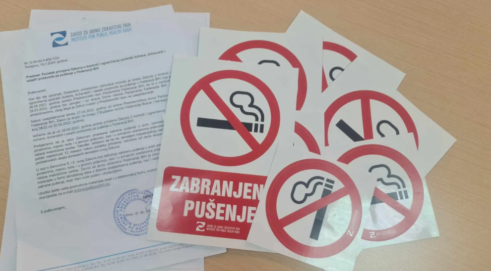 Nedavno je Zavod za javno zdravstvo FBiH poslao na adrese oko 290 zdravstvenih ustanova, odgojno-obrazovnih institucija, relevantnih društvenih i privrednih subjekta te vladinih i nevladinih organizacija naljepnice za isticanje zabrane pušenja.