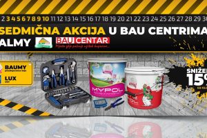Sedmična akcija u bau centrima kompanije Almy – “Sedmična akcija u bau centrima kompanije Almy! Boje za krečenje BiH brenda Baumy snižene 15%...