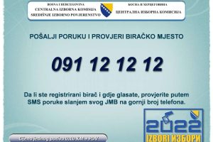 Od ponedjeljka, 12. septembra, bit će aktivan SMS centar za provjeru lokacije biračkog mjesta, saopćila je Centralna izborna komisija (CIK) Bosne i Hercegovine...