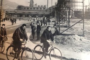 Opet svi u jednom smjeru, na posao kroz kapiju Dva. Opet tišina , zvuk pare iz lokomotive nadjačava ovu jutarnju tišinu. Ljudi u koloni prelaze preko šinom...