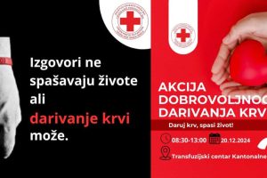 Crveni križ Grada Zenica organizuje posljednju ovogodišnju akciju DOBROVOLJNOG DARIVANJA KRVI na dan 20.12.2024. petak – u vremenu od 08:30 do 13 sati u...
