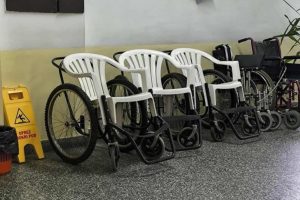 Fotografija kolica u Kantonalnoj bolnici Zenica, na kojima se jasno vidi plastična stolica montirana na postolje s točkovima, posljednjih dana širi se...