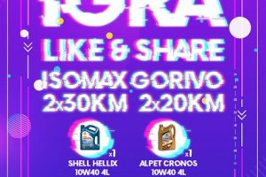 Nagradna igra “Like & Share” na oficijelnoj facebook stranici kompanije Almy! Nagrade: 2x30KM i 2x20KM ISOMAX goriva, Shell Hellix 10W40 4L...