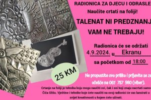 Želite li naučiti crtati? Niste talentovani? Ne znate crtati, ma i Čiča Gliša je komplikovan… Ovo je Vaša prilika jer za ovu radionicu talenat nije...