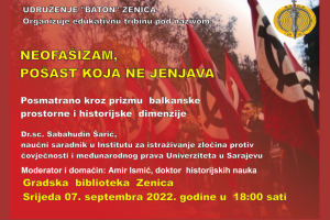 Obilježavajući 30 godina od početka Agresije na Republiku Bosnu i Hercegovinu, Udruženje ”Baton” Zenica organizuje edukativnu tribinu pod nazivom: NEOFAŠIZAM...