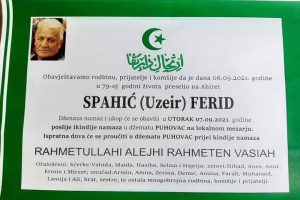 Šestog septembra 2021. godine u ponedjeljak od posljedica COVID-a 19 napustio nas je Ferid Spahić iz Puhovca. Osjećam potrebu da kao njegov prijatelj, ali i...