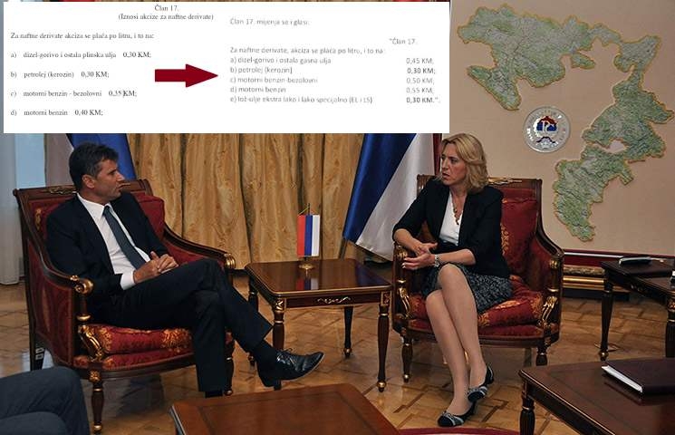 Premijeri Republike Srpske Željka Cvijanović i Federacije BiH Fadil Novalić zatražili su da se akciza na dizel gorivo u BiH poveća sa 30 na 45 pfeniga, a na...