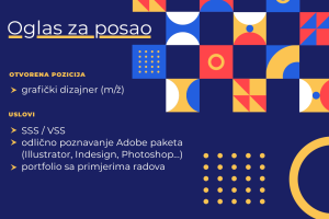 Oglas za posao: Grafički dizajner- Postanite dio Almy marketing tima! OGLAS ZA POSAO – Grafički dizajner (m/ž) USLOVI SSS/VSS odlično poznavanje Adobe...