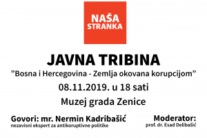 Poziv na Javnu tribinu “BiH – Zemlja okovana korupcijom” – Kantonalni odbor ZDK i Gradski odbor Zenica Naše stranke organiziraju Javnu...